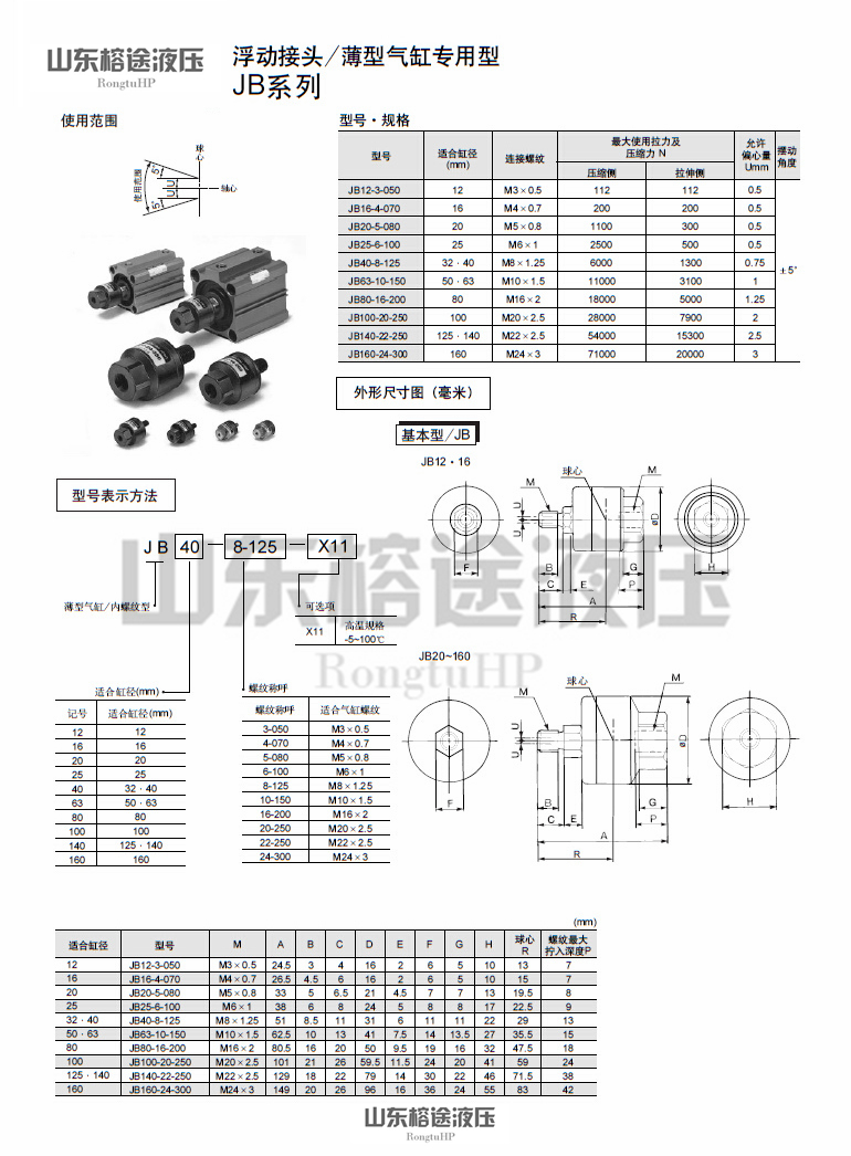 浮动接头薄型气缸专用型JB系列